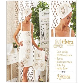 Elvira Home Collection Karmen Gelin BornozuÖzel kapalı kutusunda gönderim yapılmaktadır.50 " 90 cm Havlu Bornoz30 " 50 cm HavluÖzel kesesinde koku taşıYıkama talimatlarına uygun yıkayınız...