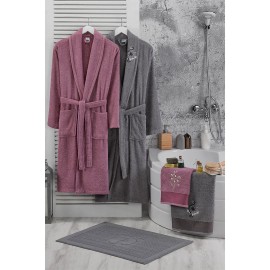 Havlulu Bornoz 4lü Set KREM-M-ANTRASIT
