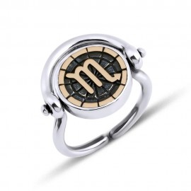 Tash Design Akrep Burcu Gümüş Yüzük Burcunuza özel tasarlanan 925 ayar gümüşten üretilen ve bronz ile bir araya getirilen burç gümüş yüzük. ZİRKON TAŞ: Dönebilen çift taraflı tasarımı ve bir tarafı tamamen zirkon taşlarla kaplı dizaynı ile yıldızların ışıltısını ve cazibesini üzerinde taşıyor. Ürün Detayları: Parmak ölçüsü ayarlanabilir, Orta parç..